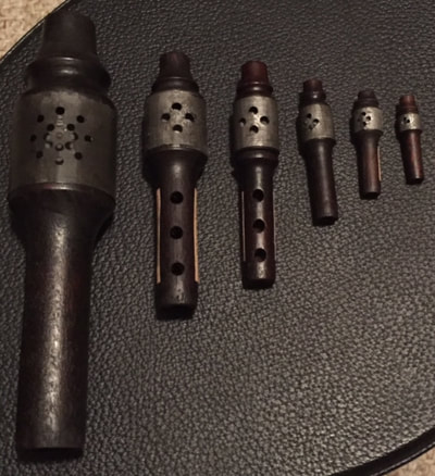 Interested in vintage kazoos? If so, you've come to the right place. I make reproductions of antique wooden kazoos, zobos, vocophones and bigotphone mouthpieces, as well as kazoos of my own design. I have been collecting kazoos for many years, and I have many original wooden kazoos in my collection. I take great pride in my workmanship and I work hard to get the details correct. Everything is hand-made in my shop. I prefer to make kazoos to order so that I can make exactly what you want. Contact me if you have any questions or would like to have a kazoo made.